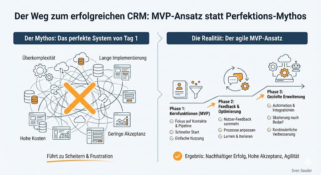Wer in dieser Phase versucht, ein CRM "fertig" zu bauen, wird scheitern.