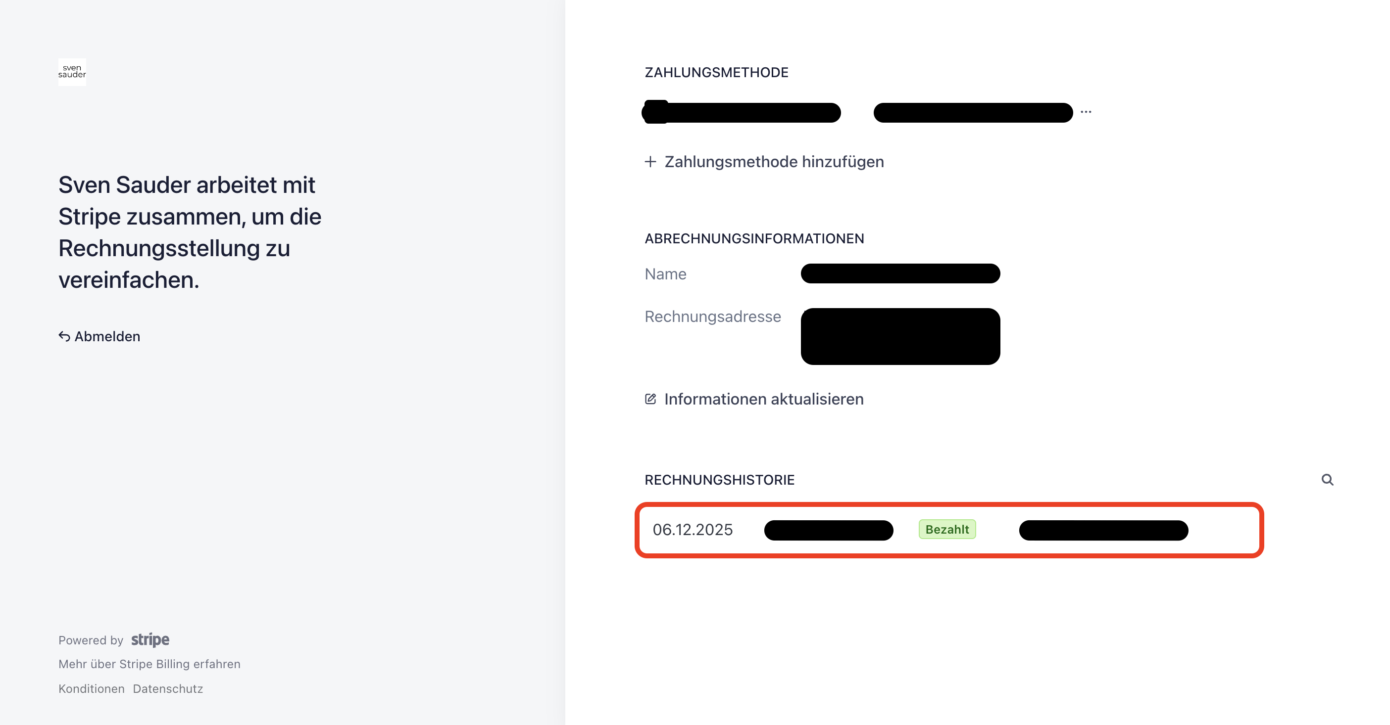 - Deinen Zahlungsbeleg und deine Rechnung findest du in meinem Kundenportal.